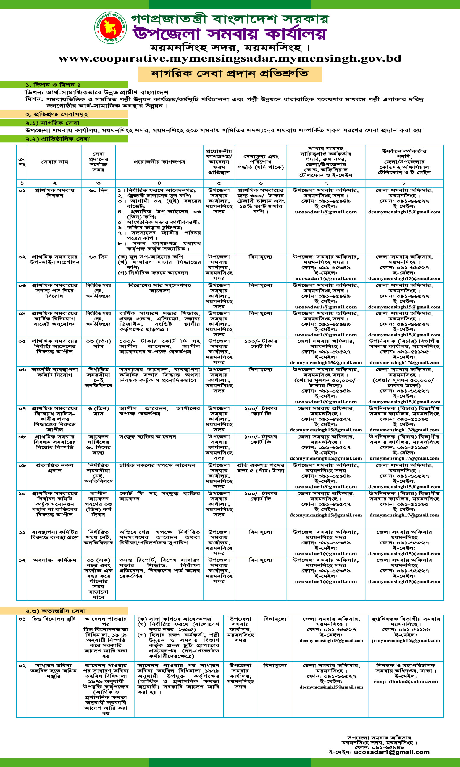 ক্রঃ নং বিভাগ/দপ্তর সেবা সমূহ/সেবার নাম দ্বায়িত্ব প্রাপ্ত কর্মকর্তা/কর্মচারী সেবা প্রদানের পদ্ধতি সেবা প্রদানের প্রয়োজনীয় সময় সেবা প্রদানের প্রয়োজনীয় ফি সংশ্লিষ্ট আইন/বিধিবিধান সেবা প্রদানে ব্যর্থ হলে প্রতিকারের বিধান